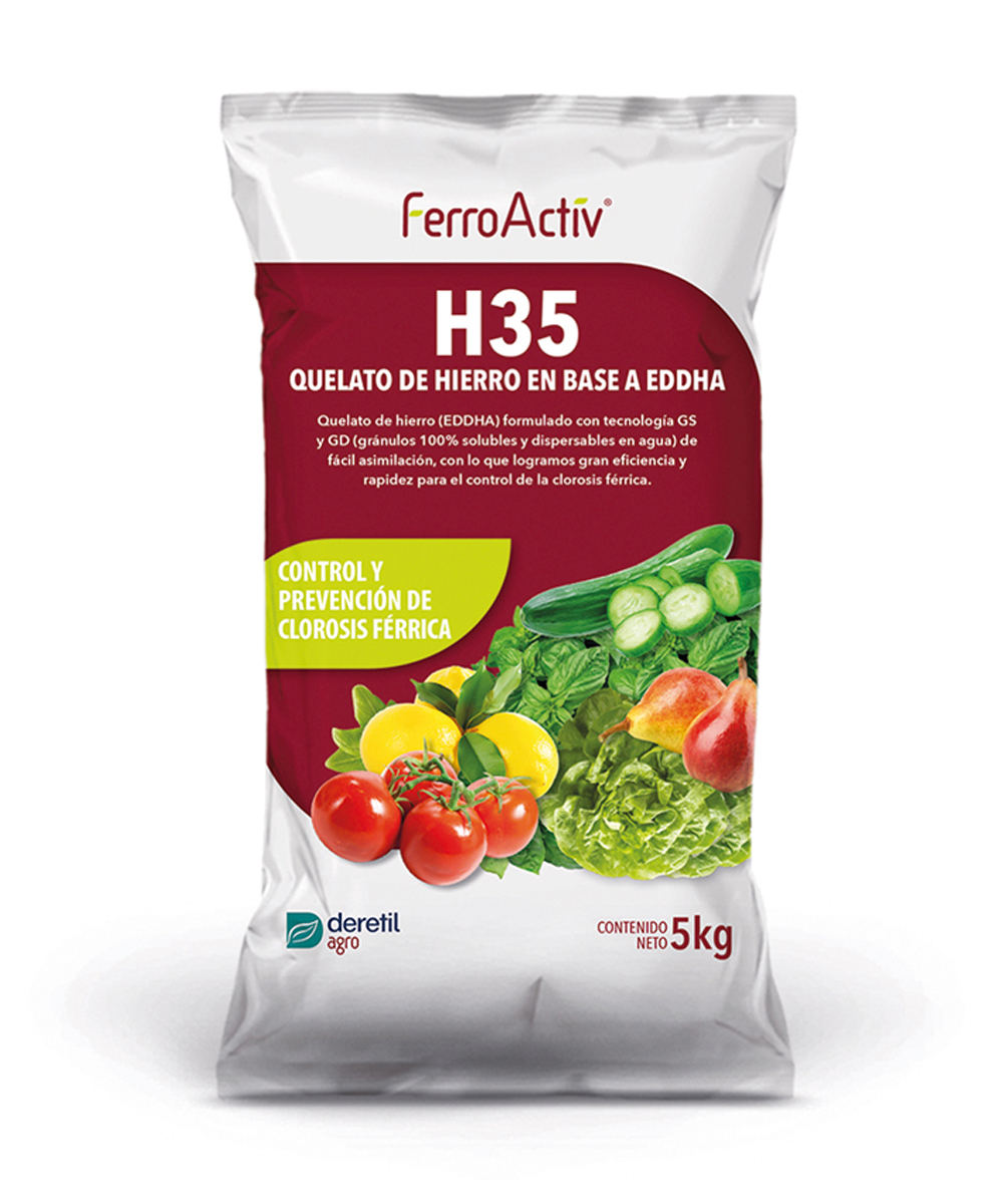 ფეროაქტივ H35 100%-ით წყალში ხსნადი პროდუქტია, რომელშიც რკინა ქიმიურად არის დაკავშირებული მაქელატირებელ აგენტთან, რაც უზრუნველყოფს მის სრულ დაცვასა და კულტურებისთვის გარანტირებულად სრულ ხელმისაწვდომობას pH 4-9 დიაპაზონში.